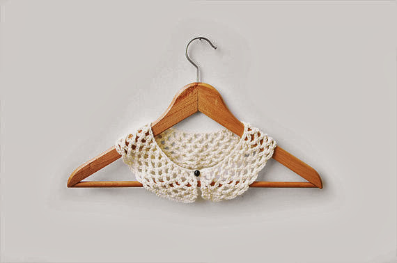 - A crocheted collar with a black pearl button, from Plexida on Etsy
